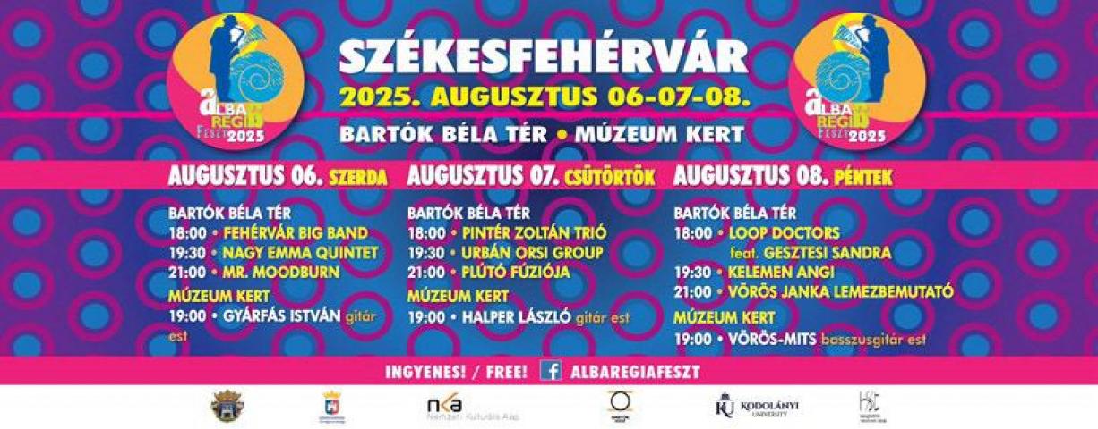A fesztivál nyitónapján, augusztus 6-án szerdán, 18 órától a Fehérvár Big Band indítja el az Alba Regia Fesztet. Az együttes helyi muzsikusokból áll, és különleges színfoltot jelent a hazai big band világban: a tagok között profi katonazenészek, hivatásos és civil zenészek, valamint jazzben végzett, de más pályára lépett műkedvelők is helyet kapnak.