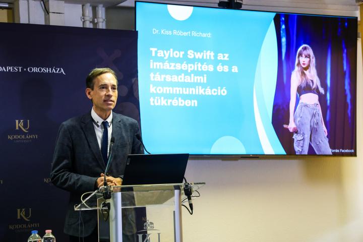 Dr. Kiss Róbert Richard a rádióadásban elmondta: fontos az egyetemen zajló tudományos munka, ami a múltat kutatja és a szakmai alapok elsajátítására is nagy hangsúlyt fektetnek, de emellett az is kell, hogy az oktatás haladjon korral, ezért olyan új trendeket is vizsgálnak, mint a mesterséges intelligencia, vagy az imázs építés. A Kodolányin ezért több olyan kurzus is elindulhatott, ami megvizsgálja egy híresség társadalmi kommunikációra gyakorolt hatását vagy az imázsának építését. Ilyen jelenség például Taylor Swift, aki nem csupán elképesztő zenei tehetség és a világ egyik legnagyobb popsztárja, hanem kiváló üzletasszony is, aki mesterien használja a közösségi médiát, és képes elnyerni az emberek széles körének szimpátiáját.