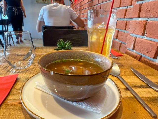 A heti bérletes menü és rendezvények bevezetésével a hely nemcsak étterem, hanem programhelyszín is: közösségi és gasztroélmény együtt. Gasztrokalandozásaim következő állomásaként ezt az impozáns éttermet látogattam meg. A napi menüből, ami minden nap 12:00-14:00 között elérhető, a húsleves – holstein kombinációt választottam.