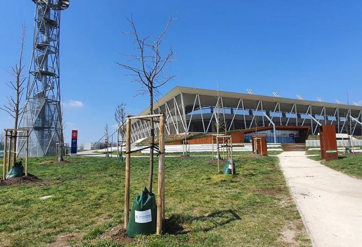 Mindegyik fához öntözőzsákot is telepítettek mely egyenletes és folyamatos vízutánpótlást biztosít a fiatal fák gyökereinek. Az öntözőzsákot tavaly alkalmazta először az újonnan telepített fák locsolásához a Városgondnokság. Akkor a Schwabisch Gmünd utcában telepített fasor fáihoz tették ki a zsákokat, mely egyenletes és folyamatos vízutánpótlást biztosít a fiatal fák gyökereinek. Ez egy új módszer a faápolásban: a fára rögzíthető zsákot vízzel töltik meg, ami 5-9 óra alatt, egyenletesen csepegve jut el a fa gyökérzetéhez. Az öntözőzsák használatát azért kezdték el, mert folyamatos vízellátást biztosít az újonnan telepített fáknak és a talajt mélyen telíti vízzel, így a gyökérzetet is a mélyebb rétegekben tartja. Feltöltésre 5-7 naponta van szükség, a talaj-, időjárás és fajta függvényében. Ezzel párhuzamosan a város növényeinek locsolása hagyományos módon is zajlik.