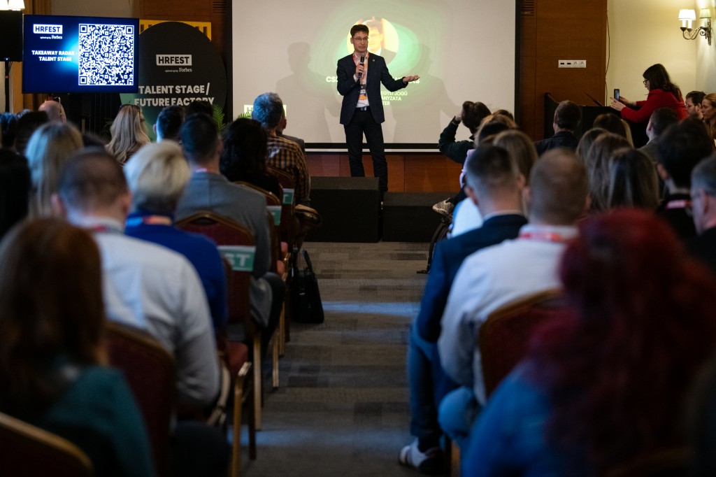 A rangos eseményt Tóth Gergely, a HR Fest alapítója és meghatározó szervezője nyitotta meg, kiemelve, hogy éppen tíz évvel ezelőtt indították útjára a konferenciát: „Akkor egy multicégnél dolgoztam, ahol a hatszáz munkatárs közül ötszázkilencvenötöt nagyon szerettem, de volt öt olyan, aki toxikus légkört teremtett. Amikor eljöttem a cégtől, azzal a céllal hoztam létre a HR Festet, hogy bebizonyítsuk, nagy szervezeteket is lehet sikeresen működtetni úgy, hogy közben az ott dolgozók jól érzik magukat és nincsenek rettenetes, toxikus játszmák. Ez ugyanis nem csak jó dolog, hanem konkrétan több pénzt is termel” – mutatott rá Tóth Gergely.