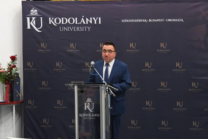 „Mindannyian a Kodolányi nagy családjába tartozunk! Az elmúlt időszakban hatalmas munkát végeztünk, hogy intézményeink fejlődjenek és hallgatóink, tanulóink számára inspiráló környezetet biztosítsunk.” – kezdte ünnepi köszöntőjét Prof. Dr. Obádovics Csilla, az Egyetem rektora. Hozzátette, büszkék arra, hogy a felvételi és a pótfelvételi eredmények igazolják az erőfeszítéseiket. A Kodolányi Egyetem népszerű a hallgatók körében, hiszen a nálunk szerzett diploma valódi értéket képvisel. A Kodolányi Gimnázium idén is rekordot ért el a jelentkezők száma, szeptembertől pedig – miniszteri döntés nyomán – a sárbogárdi Petőfi Gimnázium is a Kodolányi családhoz fog tartozni – emelte ki a rektor.