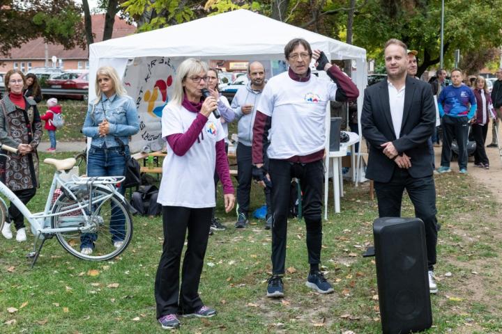 Egy ilyen eszköznek azonban csak az önrésze nagyjából kétmillió forint (a többit finanszírozza a TB), amelynek előteremtésére az operatőr párja, Pintér Anita gyűjtést indított. Az ügy mellé állt a Sport Start Kör SE, akik a fogyatékkal élő embertársainknak igyekeznek biztosítani a sportolás örömét. Így valósult meg a pénteki alkalom, amelyre Zsiga kerékpáros szerelésben érkezett, s a hangosítás segítségével mindenkinek megköszönte, hogy támogatják őt az álma megvalósításában. A szép számú résztvevőt Nagy Gergely, a Sport Start Kör SE sportigazgatója, Csernus-Lukács Edina gyógytornász és Pintér Anita is bíztatta a mozgásra és az adományozásra, majd a közös bemelegítés után megindulhatott a jótékonysági futás. A körökhöz Zsiga is csatlakozott jóféle versenykerékpárján, majd a mozgás után egy kis beszélgetésre is várták a résztvevőket.