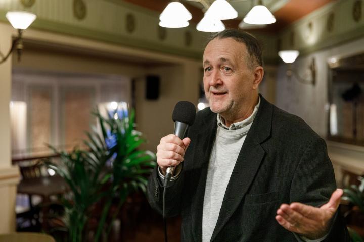 A felolvasásokat megelőzően rövid bevezetőt tartott, ahol elmondta az est történetét. Beszélt még a versekről, novellákról és személyes élményeit is elmesélte, a KJE forgatókönyvírás óráin tapasztaltakat.