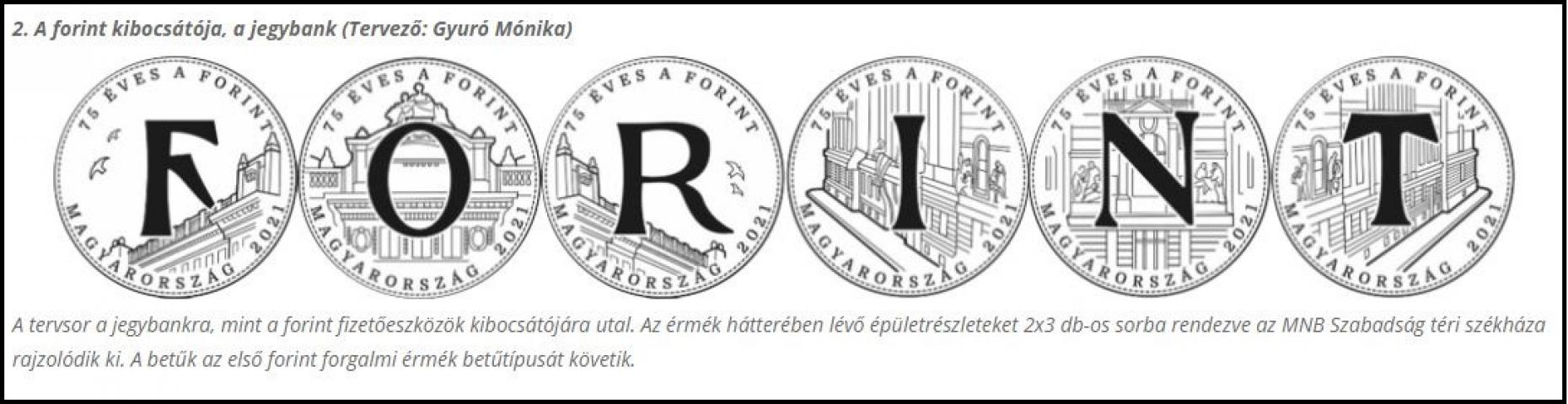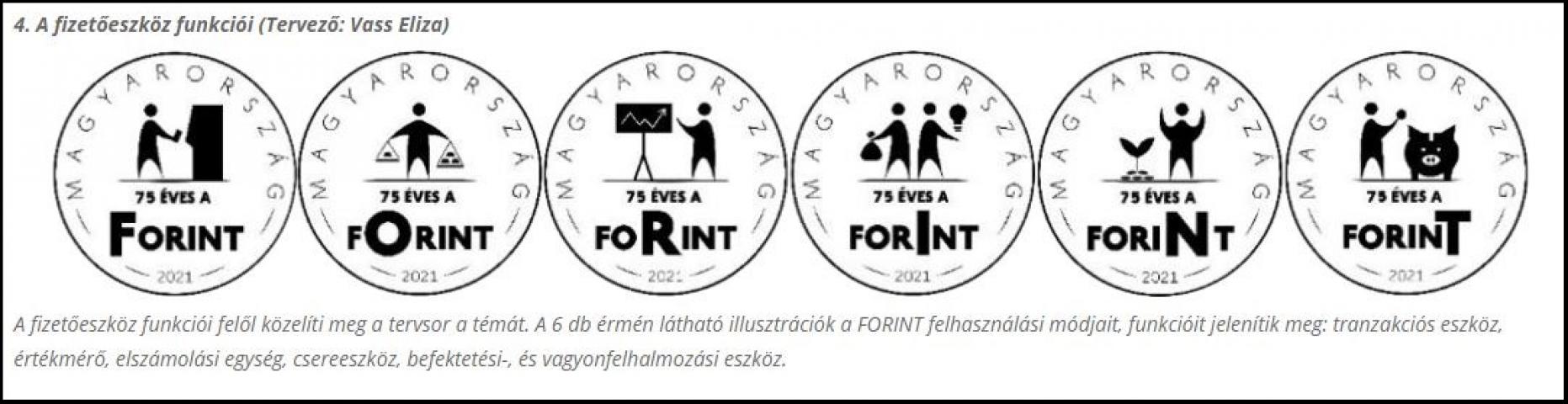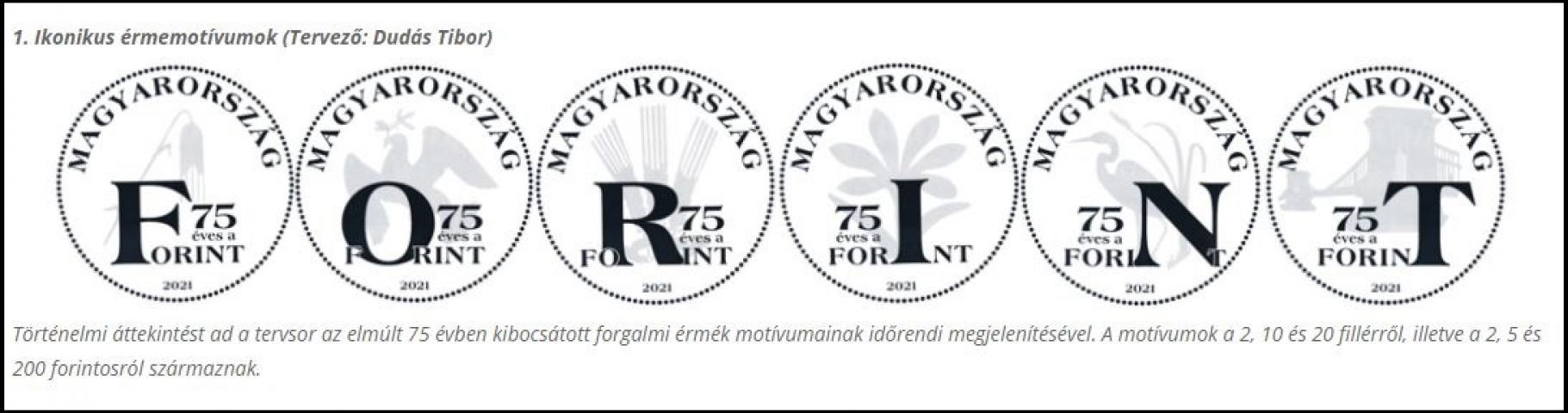 Idén augusztus 1-jén ünnepeljük a forint bevezetésének 75. évfordulóját. A jubileum alkalmából a Magyar Nemzeti Bank az 5 forintos forgalmi érme hat változatának egyidejű kibocsátását tervezi oly módon, hogy az érmék tematikus oldala a FORINT szó egy-egy betűjét jelenítse meg. Azaz a hat érme alkot majd egy „szettet”, és az érméket egymás mellé helyezve lesz összeolvasható a FORINT szó.