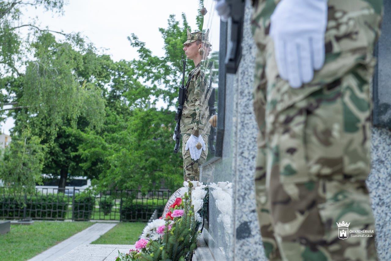 A Béke téren Viza Attila közbiztonsági tanácsnok, önkormányzati képviselő és Pálffy Károly, a Fejér Vármegyei Közgyűlés alelnöke közösen koszorúzott. Részt vett továbbá Kása István ezredes, az MH Nagysándor József 51. Híradó- és Vezetésbiztosító Dandár parancsnoka és több magánszemély, civil emlékező is.