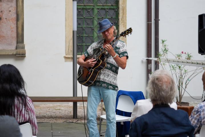A gitár örökérvényű dallamai töltötték be a múzeumkertet Gyárfás István játékának köszönhetően, aki ezúttal szólóban állt színpadra. „Én vagyok a riporter is, én válaszolok ezekre a kérdésekre” – mondta nevetve, utalva arra, hogy ilyenkor minden hangszeres szerepet ő tölt be. A közönség szeretettel és élénk figyelemmel fogadta az improvizációkra épülő koncertet, amely méltó tisztelgés volt a jazz hagyományai előtt.