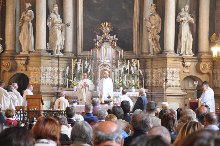 Vasárnap, a város papságával a Szent Imre templomban koncelebrált ünnepi püspöki szentmise után került sor Székesfehérvár egyházközségeinek közös úrnapi körmenetére. A főpásztor hívek sokaságának kíséretében, ünnepélyes körmenetben hordozta körül az Oltáriszentséget a Belvárosban, ahol négy oltárt állítottak fel a körmenet útvonala mentén.