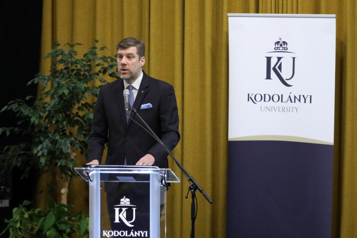 Szilágyi Péter helyettes államtitkár nyitotta meg Vizi László Tamás megbízott rektorral az első Kodolányi-napokat.