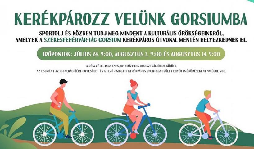 „Sportolj és közben tudj meg mindent a kulturális örökségünkről, amelyek a Székesfehérvár-Tác Gorsium kerékpáros útvonal mentén helyezkednek el. Ha szeretsz kerékpározni és szereted a történelmet tarts velünk!” – így invitálják az érdeklődőket a „Kerékpározz velünk Gorsiumba!” programsorozatra.