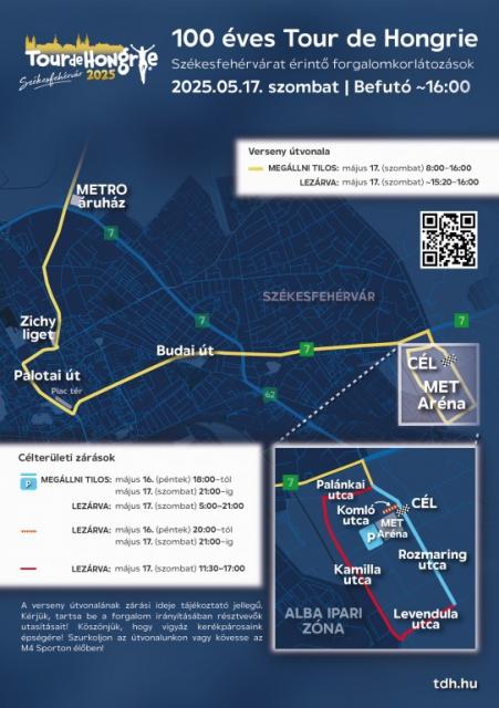A jövő héten szerdán rajtoló Tour De Hongrie egyik idei főszereplője – éppen úgy, mint a százéves kerékpáros verseny történetében immár több esztendőben is – Székesfehérvár lesz. „Május 17-én érkezik a mezőny Tatáról városunkba. A kerékpáros sportág ünnepe lesz szombaton, hiszen már a befutó előtt minden erről szól majd a MET Aréna körül.” – mondta el Mészáros Attila alpolgármester. Hozzátette, a helyszíni programokat a Hydro Fehérvár AV19, a Kerékpáros Klub székesfehérvári szervezete, a Honvéd Szondi SE triatlon szakosztálya és a Szingo SE közösen szervezik meg. A család apraja-nagyja talál majd kedvére valót a 13.30 órakor kezdődő mezőnyvárón. A gyermekeket biciklis akadálypálya és kreatív sarok várja, ügyességét minden korosztály kipróbálhatja a jégkorongos-biciklis akadálypályán a Hydro Fehérvár AV19 sportolóinak közreműködésével. Lehetőség lesz kipróbálni a teherbiciklit, és a bicókórházban átnézetni szezon előtt a saját járműveket. A kerékpáros közlekedés szabályairól is frissíthetik tudásukat a jelenlévők, akik biciklis triál bemutatót is láthatnak.