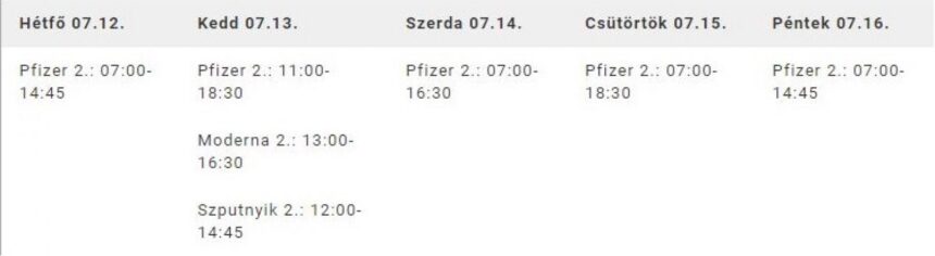Július utolsó hetétől változik az oltópont nyitvatartása a Fejér Megyei Szent György Kórházban. Hétfőn, szerdán és pénteken 7 és 15 óra között, kedden és csütörtökön pedig 11 és 19 óra között várják az oltásra érkezőket.