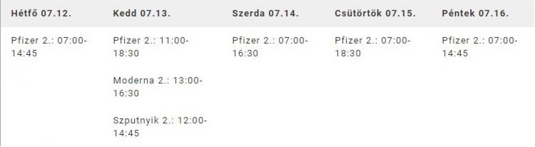 Az oltóközpontban elérhető másodoltások heti bontásban a kórház honlapján megtalálhatók. A védőoltás felvételére érkezőktől azt kérik, hogy automatikusan csak akkor menjenek a másodoltásra, ha az adott napra van időpontjuk. Egyéb esetben, egyeztetés céljából az oltas@mail.fmkorhaz.hu e-mail címen vegyék fel a kapcsolatot az oltóponttal.